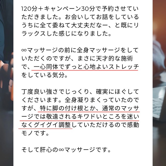 ∞150分施術と後日レポートについて、丁寧に綴っていただきました!