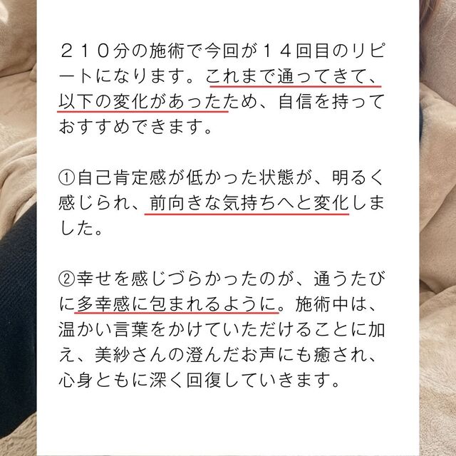 約一年、定期的に通っていただいた方からの口コミです。