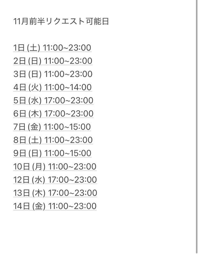 11月前半のスケジュールです